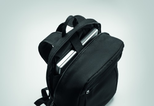 15 inch laptop backpack in 340 gr/m² washed canvas. Padded back and shoulder straps. Back trolley strap.