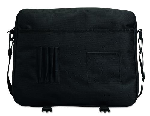 Document flap bag in 600D polyester with zipped main compartment and several pockets with an adjustable and detachable shoulder strap.