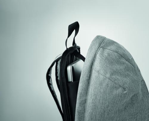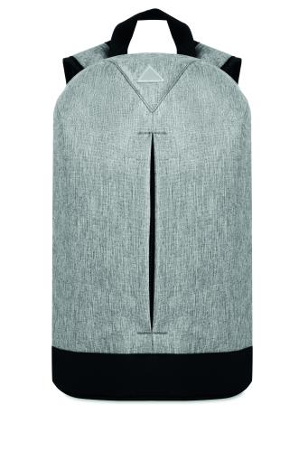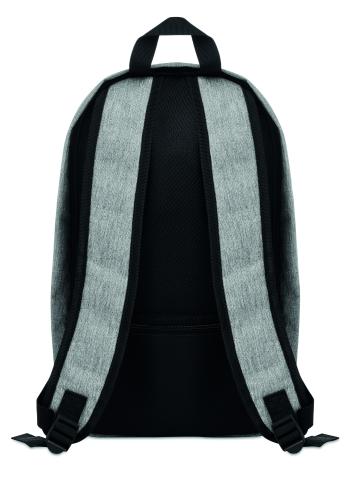 13 inch laptop backpack in 600D 2 tone polyester with outside pocket with zipper. Zipper main compartment on backside for better protection.