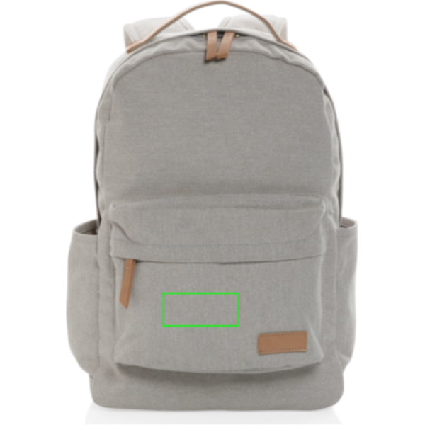 This 16oz. recycled canvas backpack is a classic for everyday use . This bag features a padded 14"laptop pocket and a spacious front and back pocket to hold your other daily essentials. 2% of proceeds of each Impact product sold will be donated to Water.org. Composition 60% recycled cotton and 40% recycled polyester. Lining in 150D recycled polyester.