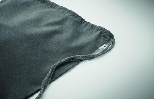 Drawstring bag in recycled pre-consumer cotton (70 %) and RPET (30%) 140 gr/m². This item can shrink after printing.