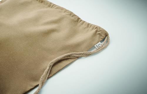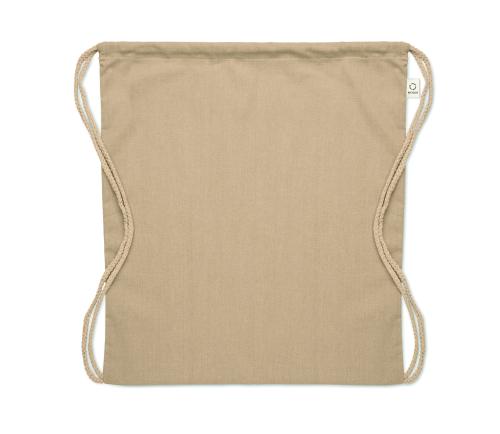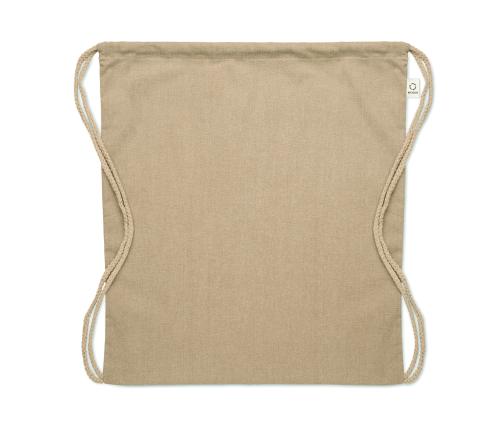 Drawstring bag in recycled pre-consumer cotton (70 %) and RPET (30%) 140 gr/m². This item can shrink after printing.
