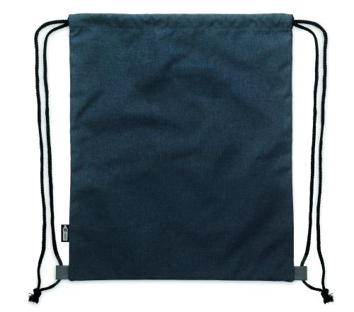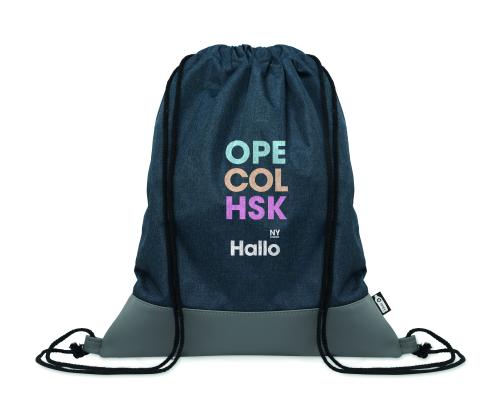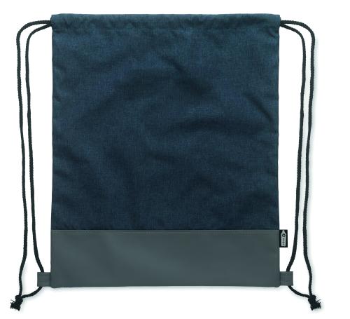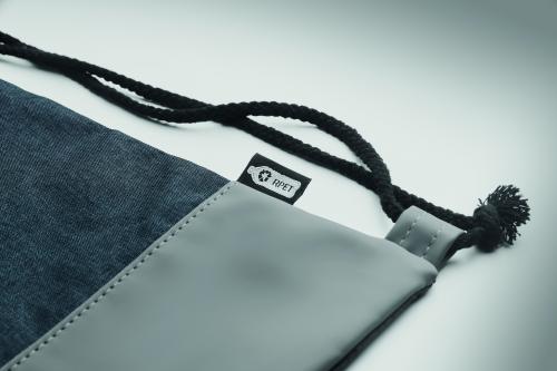 Drawstring bag in 2 tone 300D RPET polyester with soft PU detail and polycotton cord.