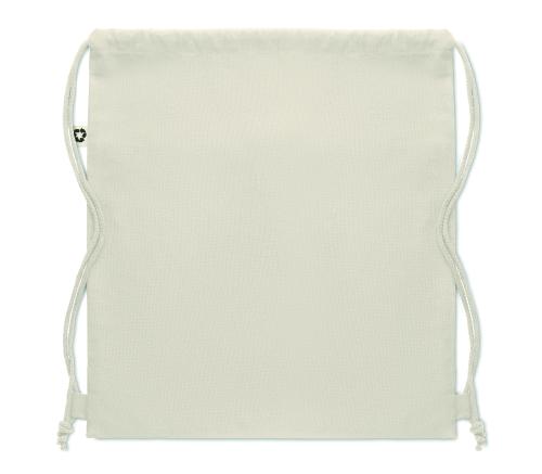 Recycled cotton drawstring bag with natural cords 50% cotton and 50% recycled cotton. 220 gr/m².
