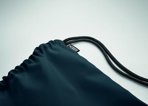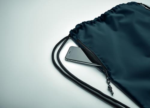 Large drawstring bag in 300D RPET polyester with side zippered outer pocket.