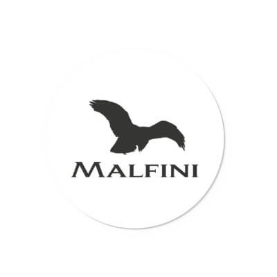 Stylish sticker with the MALFINI logo in three colour versions. Suitable for marking shops, packaging, or as a gift.