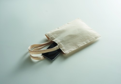 Small cotton gift or goodie bag with short handles. 140 gr/m².