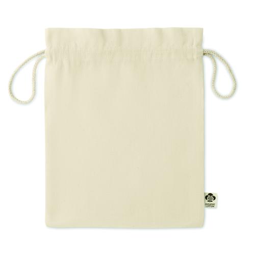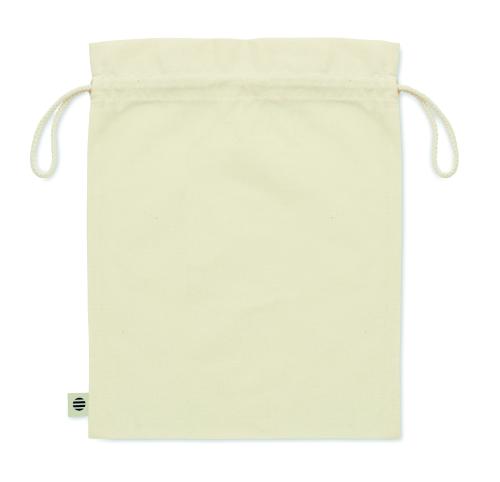 Medium gift draw cord bag in organic cotton. Size approx. 25 x 32 cm. 105 gr/m².