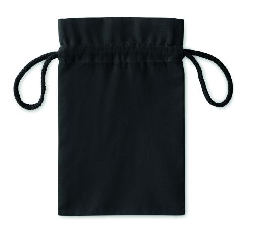 Small gift cotton draw cord bag. Size approx. 14 x 22cm. 105 gr/m².