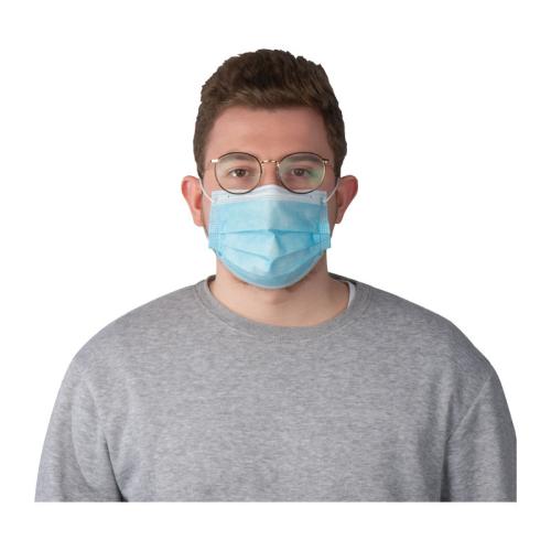 Disposable face mask (mouth-nose protection) 3-layer with elastic band holder and wire bracket for fixation.