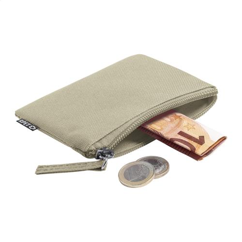 Zipped purse in 600D RPET polyester, with distinctive RPET label.
