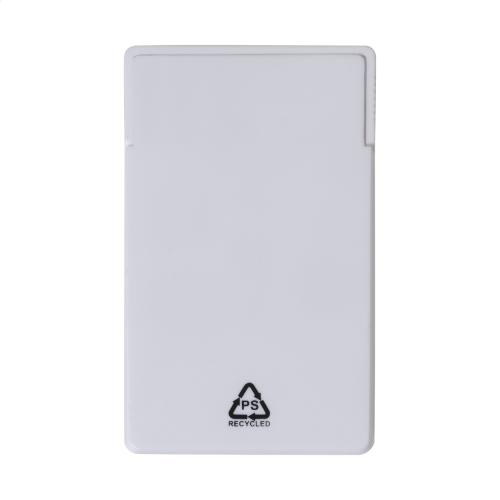 Compact travel sewing kit in card shaped recycled PS case. Including 6 coloured polyester threads, scissors, 2 safety pins, 2 needles, 2 buttons and a needle threader.