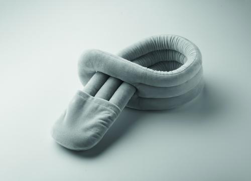 Bendable travel pillow made of soft polyester and foam. Includes RPET drawcord pouch for easy storage. Comfortable and compact for travel.