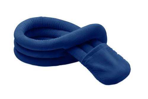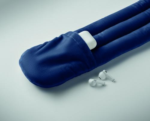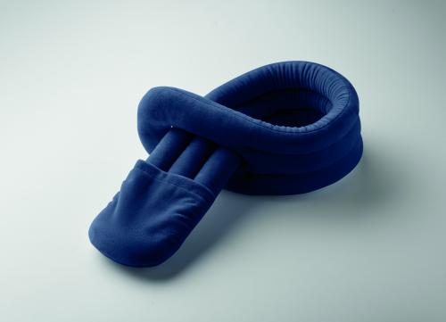 Bendable travel pillow made of soft polyester and foam. Includes RPET drawcord pouch for easy storage. Comfortable and compact for travel.