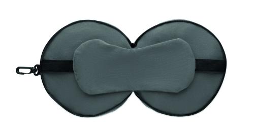 2 in 1 travel pillow with attached eye mask.