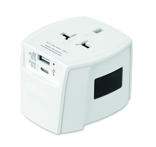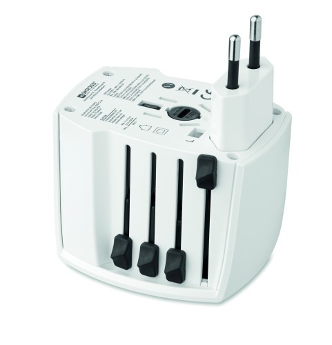 SKROSS® MUV USB — universal 2-pole travel adapter with USB-A and Type-C ports. Delivers 30W via Type-C and 18W via USB-A for fast, safe charging worldwide. Compact, powerful, and travel-ready.