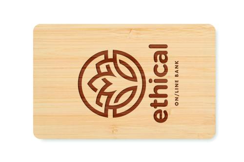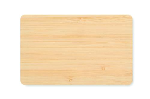 RFID Anti-skimming card in bamboo case. By using an electromagnetic field it makes all 13.56 MHz cards (trains, buses, bank or credit cards) secure from electronic pick pocketing 2-3 cm around the card. (1,3 mm). Bamboo is a natural product, there may be slight variations in colour and size per item, which can affect the final decoration outcome.