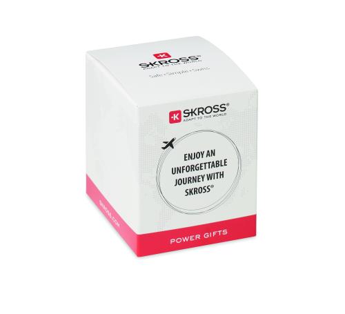 Universal SKROSS® travel adapter. Receptacles for Europe, USA/Japan, Australia/China. 2-pole, unearthed. Fulfils all international security-relevant standards and norms. Even child safe.