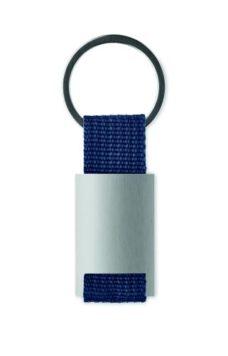 Metal rectangular key ring with coloured polyester webbing. Individually packed in a carton gift box.
