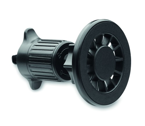 360 degree rotation magnetic air vent mount phone holder in ABS. Includes additional magnetic metal ring to support charging of non-magnetic wireless chargeable phones.