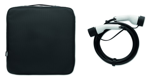 Durable padded charging cable storage bag in 600D RPET with mesh inner compartments for on-board electric cars.