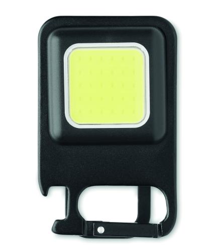 Multi functional mini torch portable 400 mAh USB rechargeable aluminium 6W COB flashlight with magnet, carbineer and bottle opener. Luminous flux: 800 lm. 3 lighting modes (high, low and flashing).