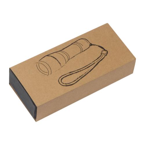 LED flashlight made of aluminium with 3 different light functions (still, SOS and flashing light), a power of 10 watts and a wrist strap.