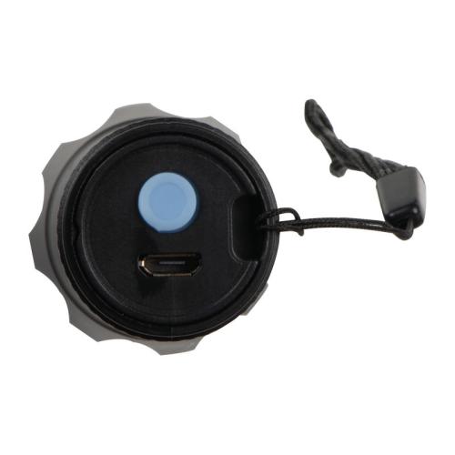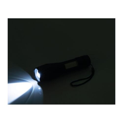 Rechargeable torch (3W, 150 lumens) with 600mAh battery and additional side light (3W, 130 lumens). The torch has three light modes and is supplied with a charging cable.