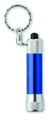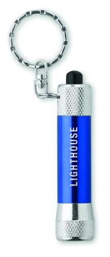 Mini aluminium torch with 1 LED key ring . 4 batteries LR44 included. Small and compact to fit on your keyring. Perfect for walking your dog in the evening, and less struggle opening doors in the dark. To see or not to see, that is the question.