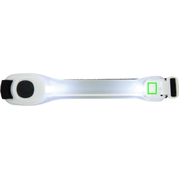 Safety strap with built-in led that can easily be strapped on your arm. The strap makes you more visible during outdoor activities in the dark.