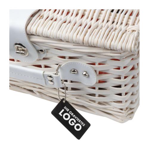 Metal pendant with small chain, it can be branded with laser engraving or digital print. Ideal for logo on picnic baskets or trolleys.