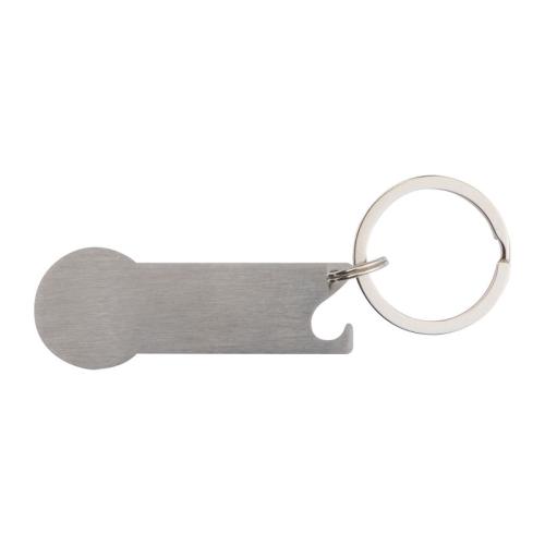 Metal keyring with integrated shopping cart chip.