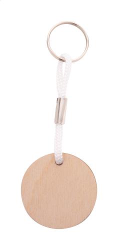 Round shaped, birch plywood keyring with coloured polyester string and full colour printing. Price includes UV LED printing on one side. MOQ: 200 pcs.