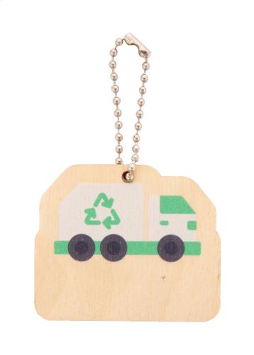 Birch plywood keyring with metal chain and environment protection themed design.