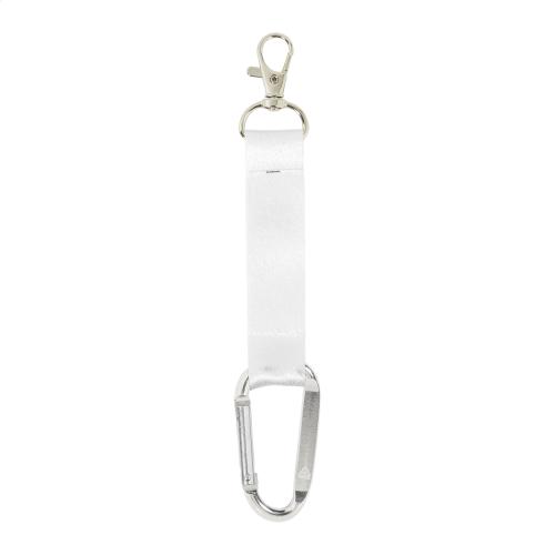 Custom made, RPET polyester mini keyring with sublimation printed graphics on both sides. With small metal and large recycled aluminium carabiners. MOQ: 100 pcs.