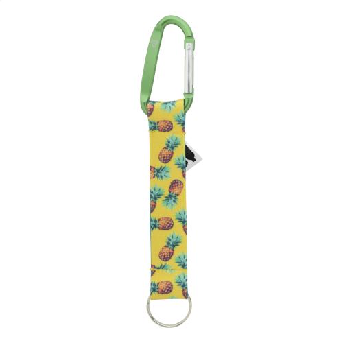 Custom made RPET polyester keyring with sublimation printed graphics on both sides. With inside RPET label, recycled aluminium carabiner and metal ring. MOQ: 100 pcs.