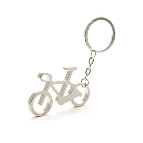 Bicycle shaped aluminium keyring with bottle opener function.