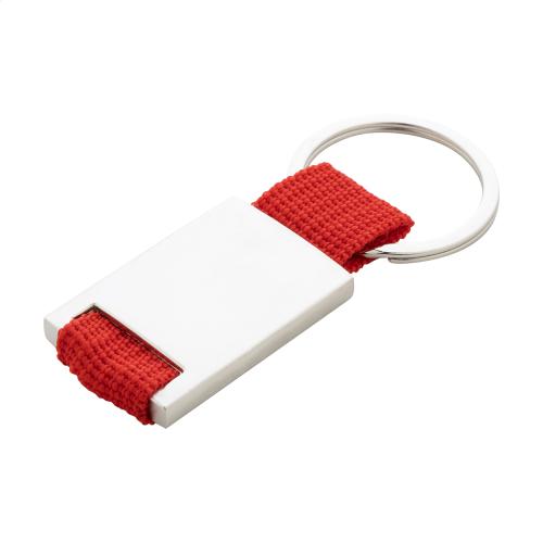 Metal and polyester keyring.