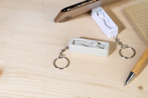 Recycled ABS antistress fidget toy keyring with integrated mobile holder and metal ring.