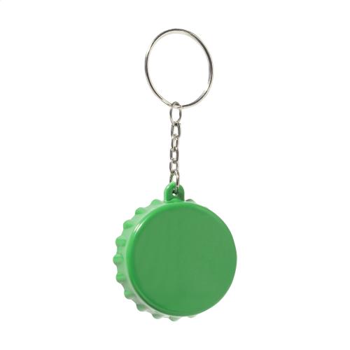 Recycled ABS, bottle cap shaped keyring with bottle opener.