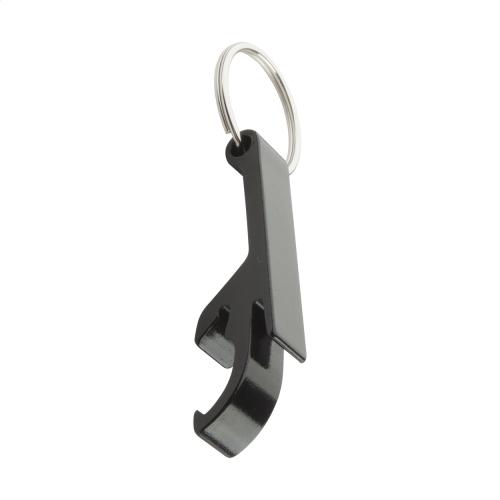 Aluminium bottle and can opener with keyring.