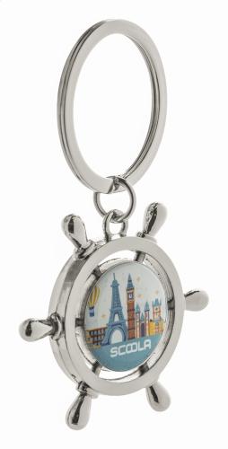Boat wheel shaped metal keyring, in black gift box.