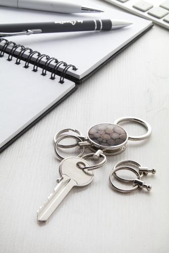 Metal round shaped keyring with 5 detachable rings. In black gift box.