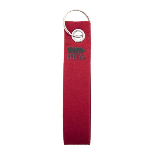 RPET felt keyring with metal ring. With distinctive RPET logo.