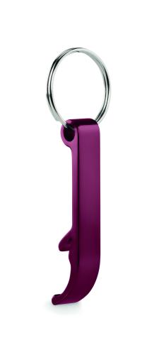 Recycled aluminium key ring bottle opener in shiny finish.