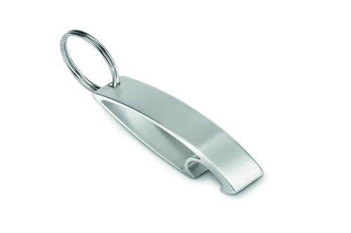 Aluminium key ring bottle opener in shiny finish.
