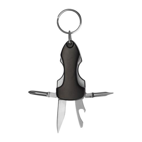 Metal Multitool with Keyring, LED-Light, Flat- and Srewdriver, Bottle Opener and Knife.