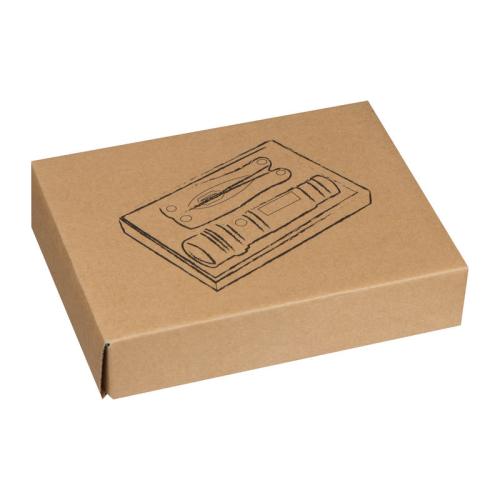 Set of large metal torch with 14 LEDs and multi-tool with pincers, saw, can opener, nail file, large and small slotted screwdriver, Phillips screwdriver, extra sharp knife, and fish scaler with measuring unit.