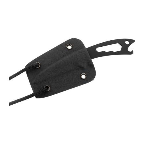 Multifunctional Schwarzwolf knife in a case with a cord. The multifunctional knife handle can be used as a bottle opener and wrench holes for tightening a nuts. The cord includes an orange whistle. The case is made of special plastic alloy Kydex. Packed in a Schwarzwolf gift box.
