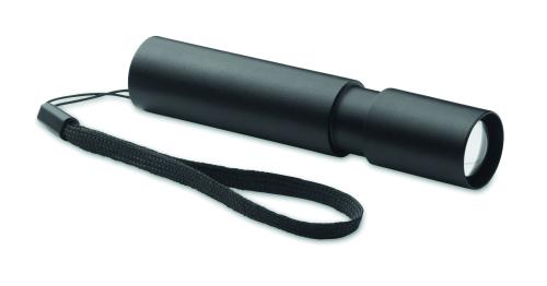 Aluminium rechargeable torch 110 lumen with 3 light settings and zoom in/out functionality. Built-in 400 mAh rechargeable battery and charging cable included.